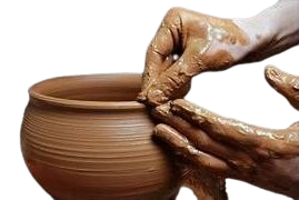 hands shape the clay into exquisite pots, vases, and idols. He knows that the true magic