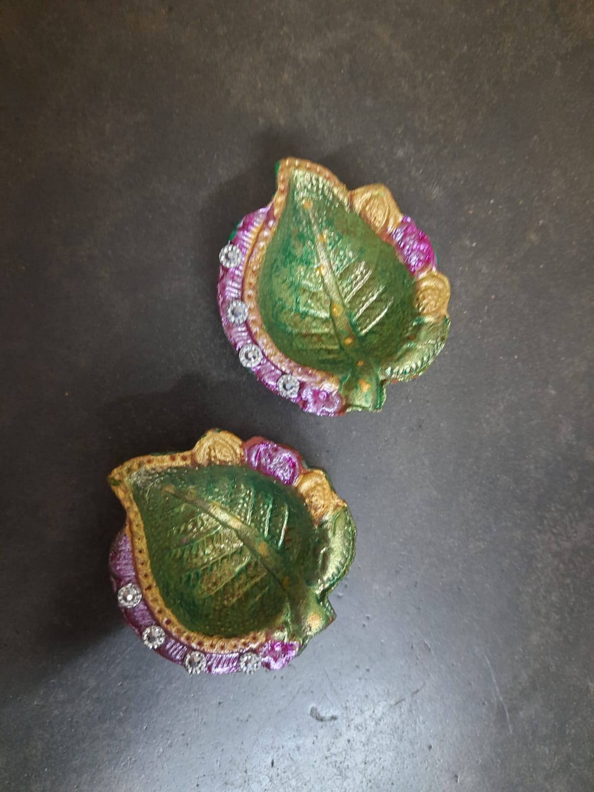 Set of 2,Leave shaped Handmade diyas,100% Clay